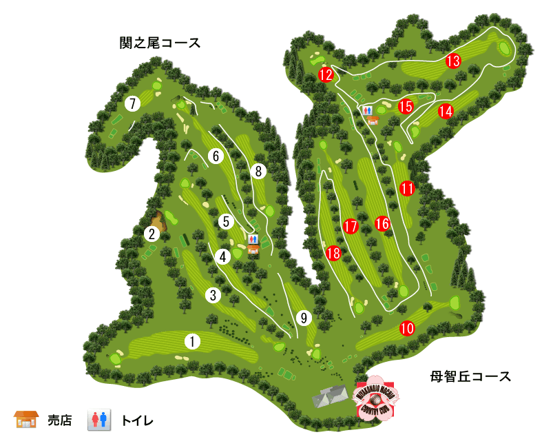 アウト(関之尾コース)とイン(母智丘コース)のレイアウト違い