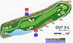 - No.3(Par5/478Y):右サイドの池に注意しつつ、2オンを狙う戦略的ロング。